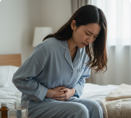 インフルエンザによる下痢とともに、嘔吐や吐き気、腹痛が併発する場合があります。特に嘔吐は子どもで頻度が高く、脱水リスクが増します。腹痛は一過性で軽度の場合が多いですが、強い痛みが続く場合や血便が見られる場合は、消化管の炎症や合併症の可能性もあります。下痢や嘔吐が同時に起こると、体力の消耗が激しくなるため、早めの水分・電解質補給が不可欠です。